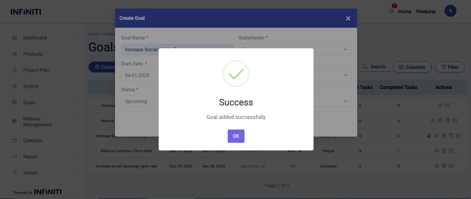 • By clicking the Create Goal button, the “Create Goal” form will be displayed.