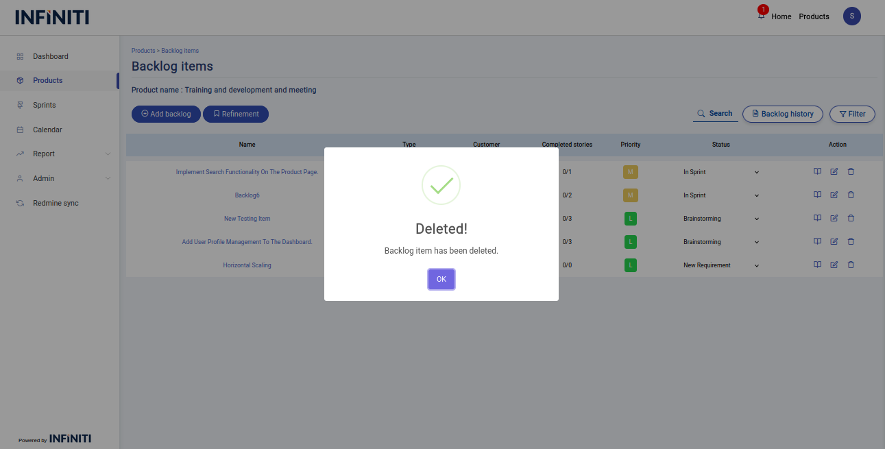 - The backlog items in the status of “In sprint” cannot be deleted.