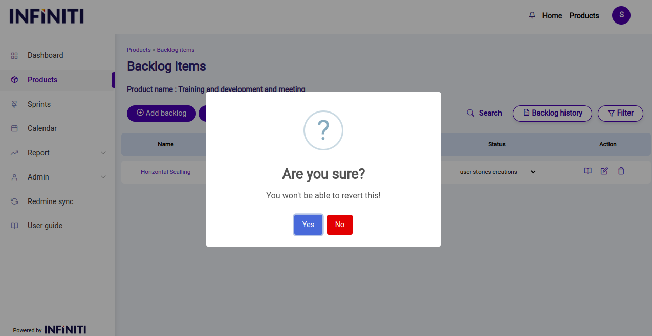 - If yes is clicked then the backlog item will be delete if no is clicked the will not be deleted.
