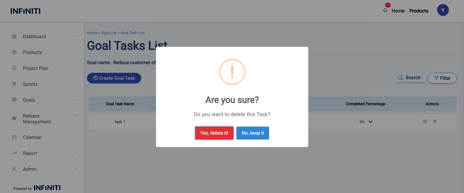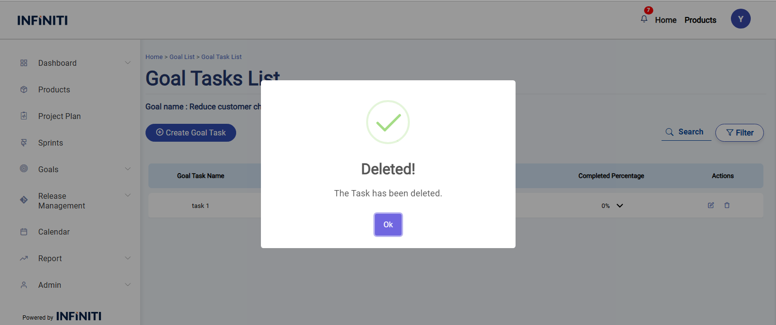After click Yes delete It button task will deleted and Displays a success popup and Refreshes the task list .