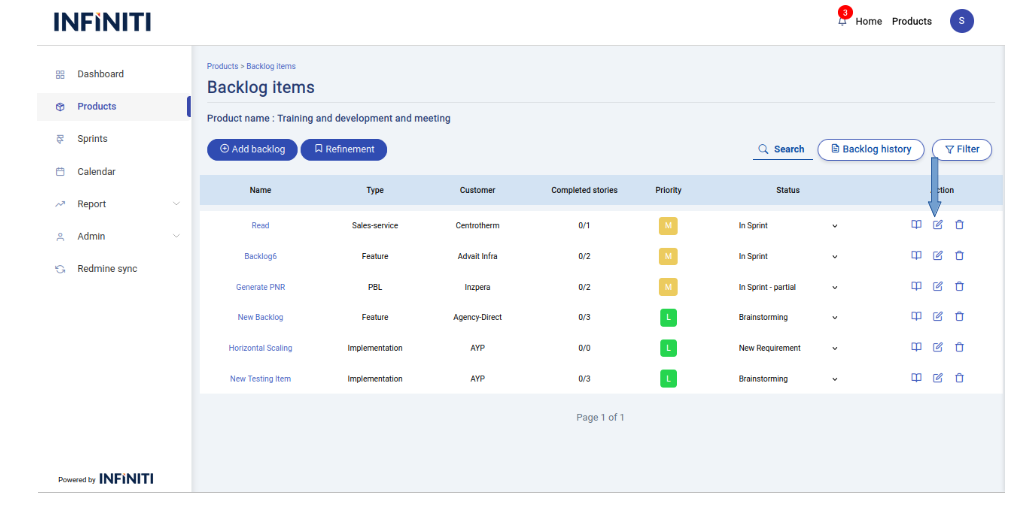 • Clicking the ‘Edit’ icon below will display the edit backlog form.