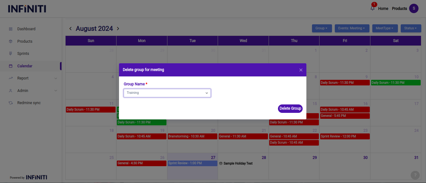 - Once confirmed, the group will be removed from the system, and any associated data will be deleted.