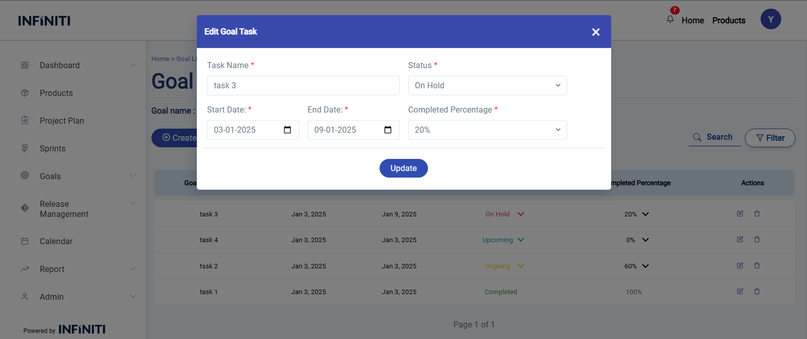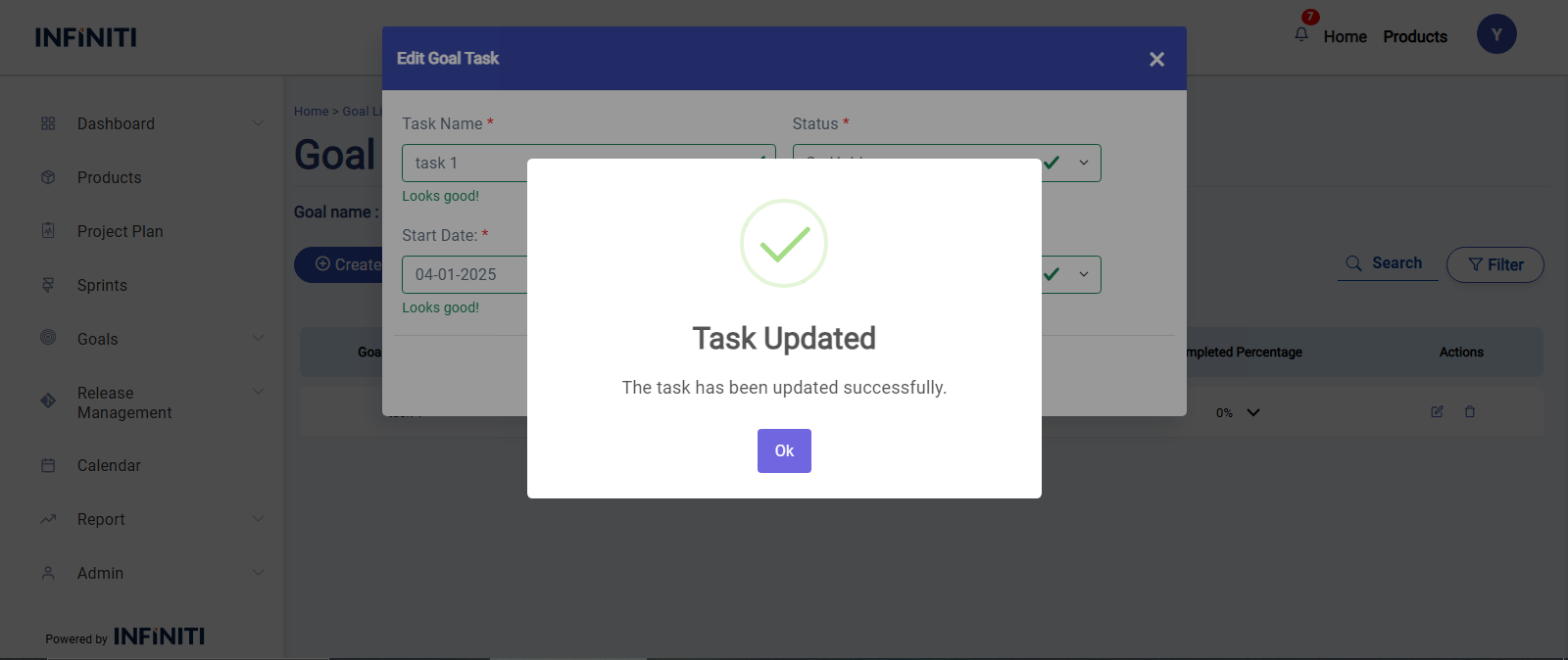 By clicking the Edit button the Edit Goal Task form will be displayed.