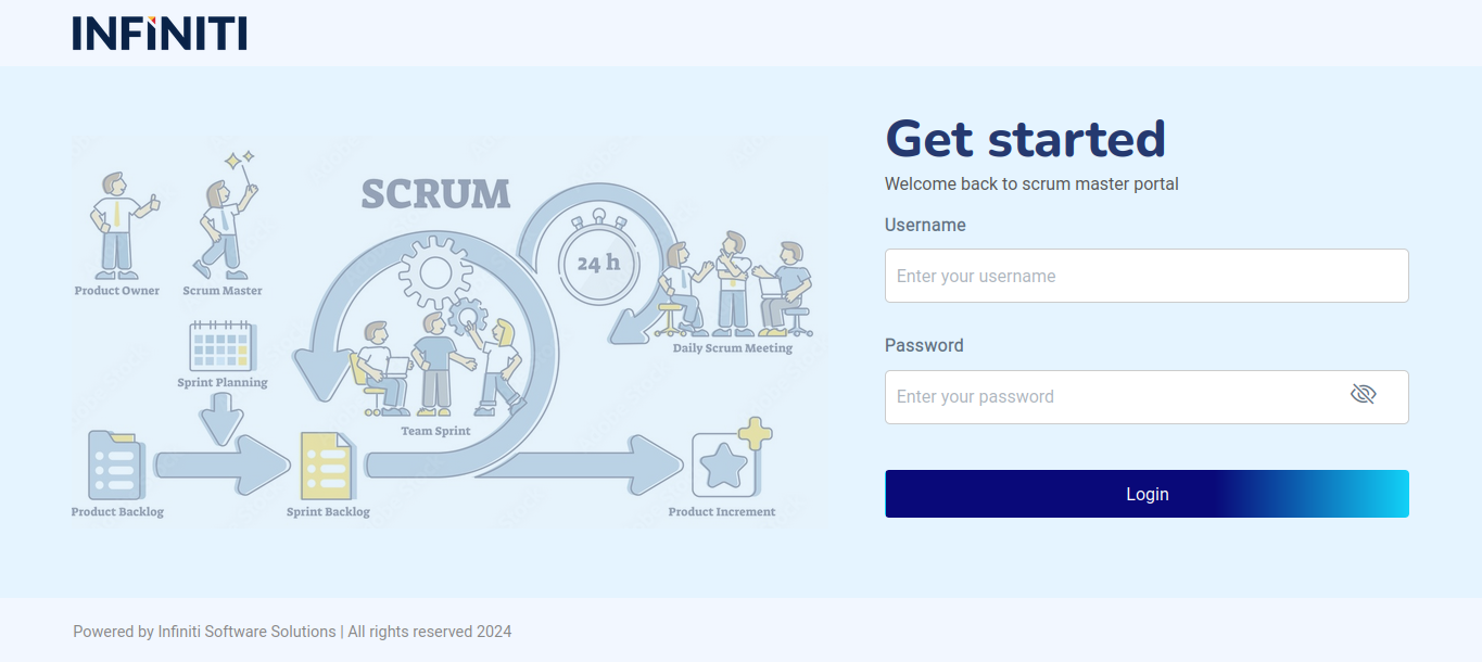 The login screen is the entry page for the Scrum Management Portal.