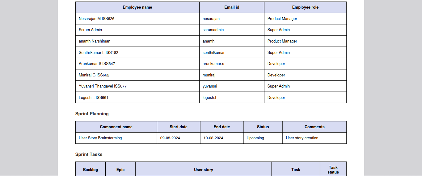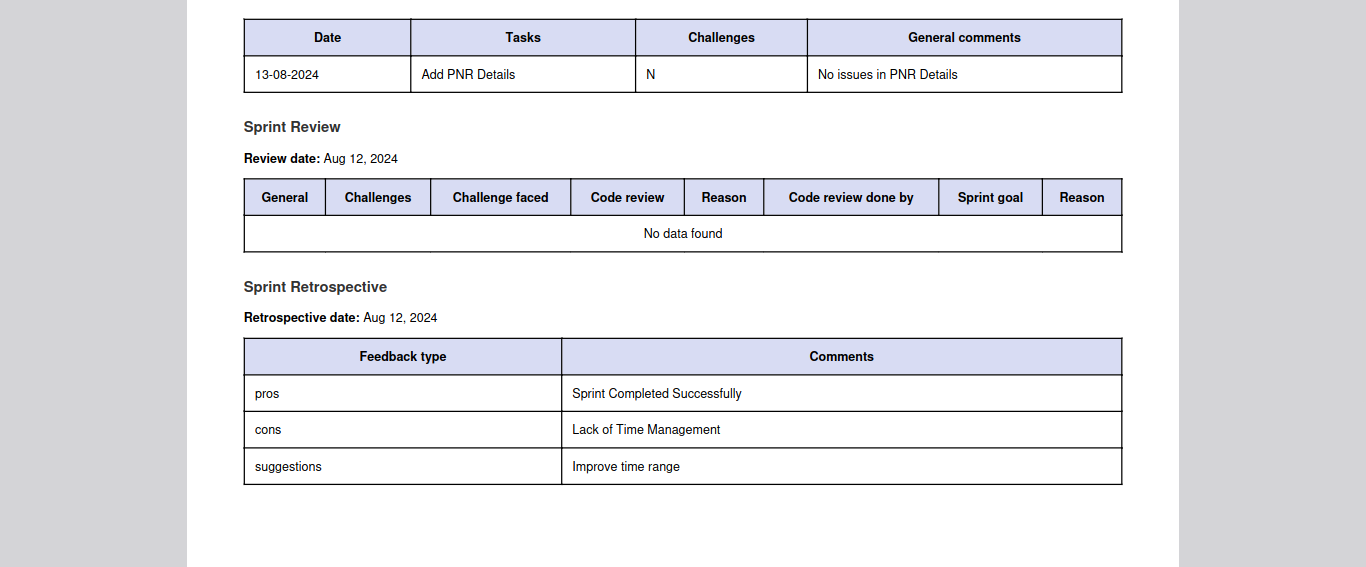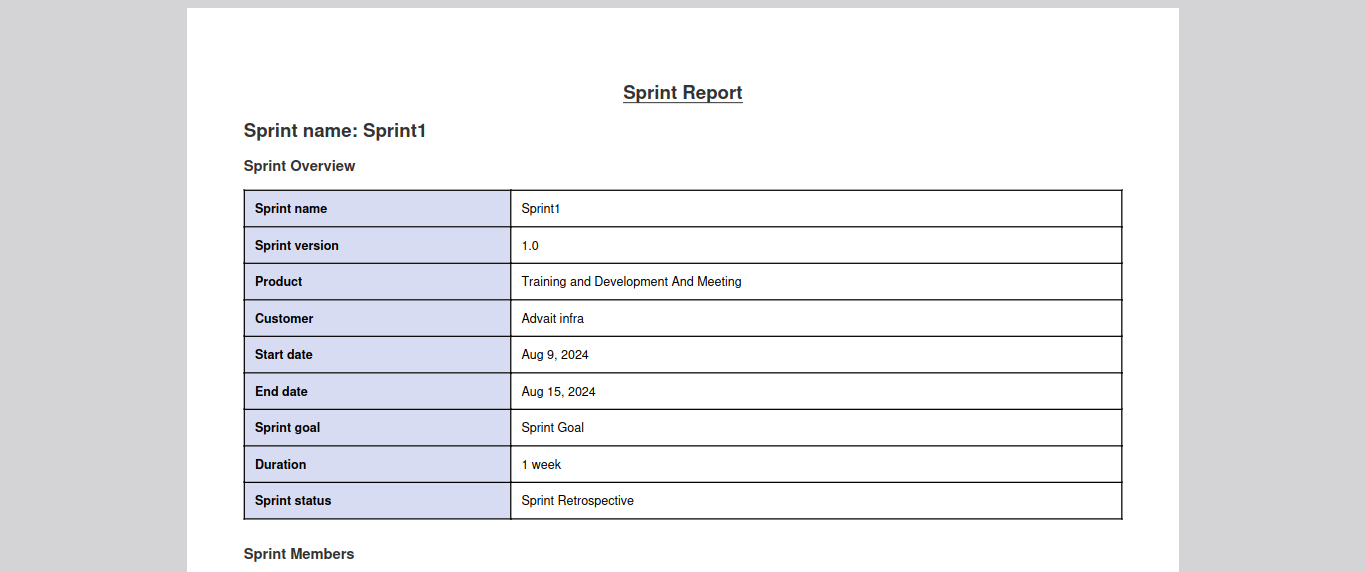 The PDF download option allows you to download a report containing all the sprint details, and the action is completed by clicking the ‘Download’ button.