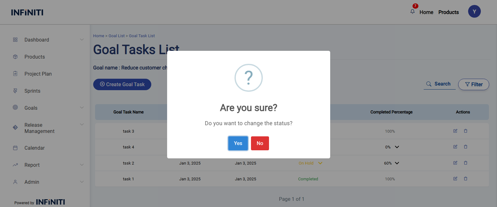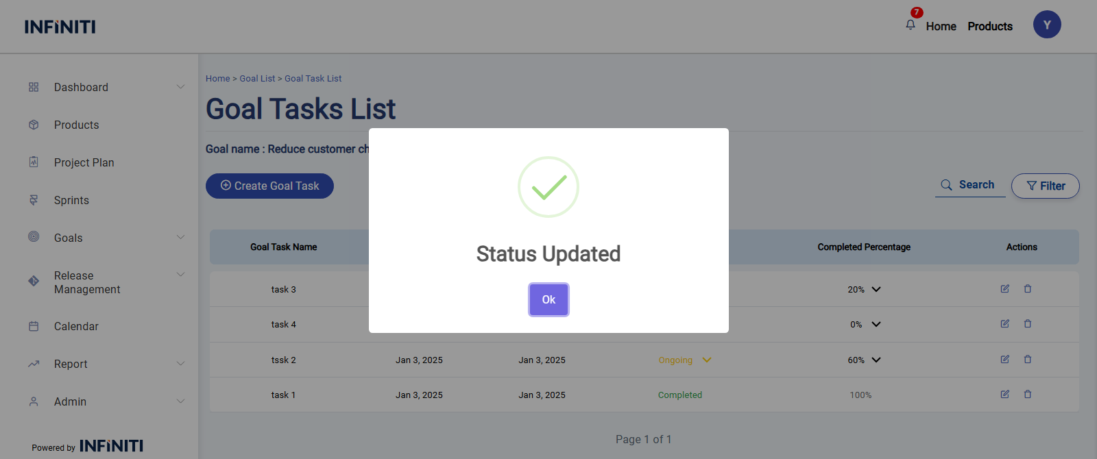 • After click Yes Displays a success popup and Refreshes the task list to display the modified task.