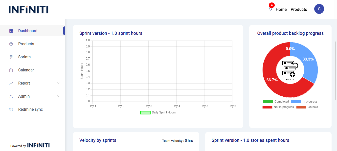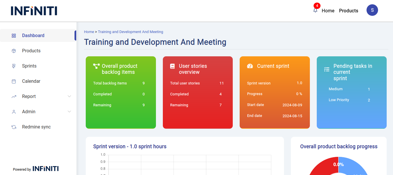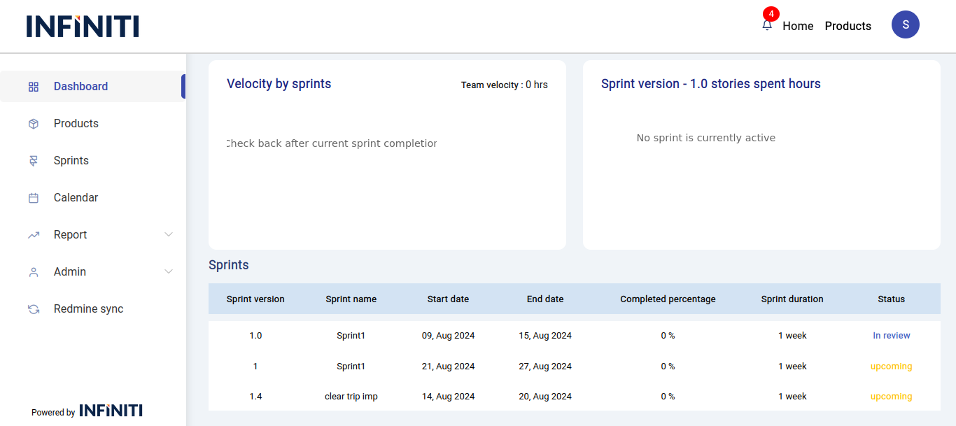 • If multiple sprints are running within the product, a dropdown menu will appear, allowing users to select a specific sprint to view its details on the dashboard.