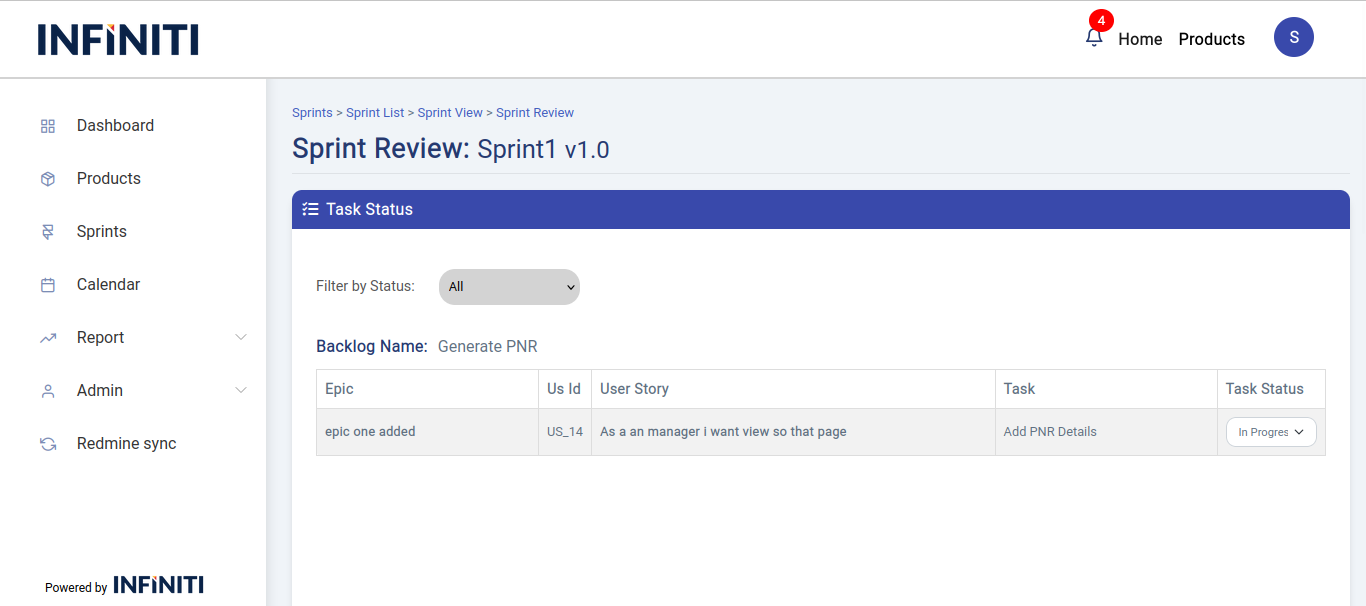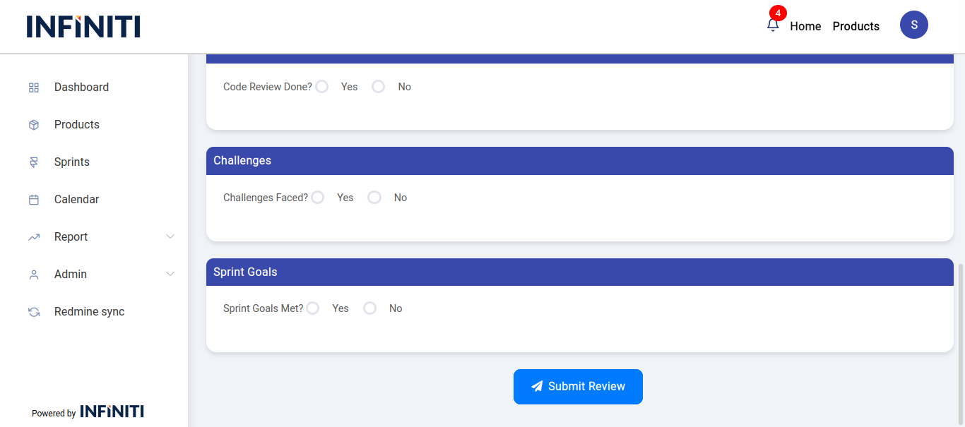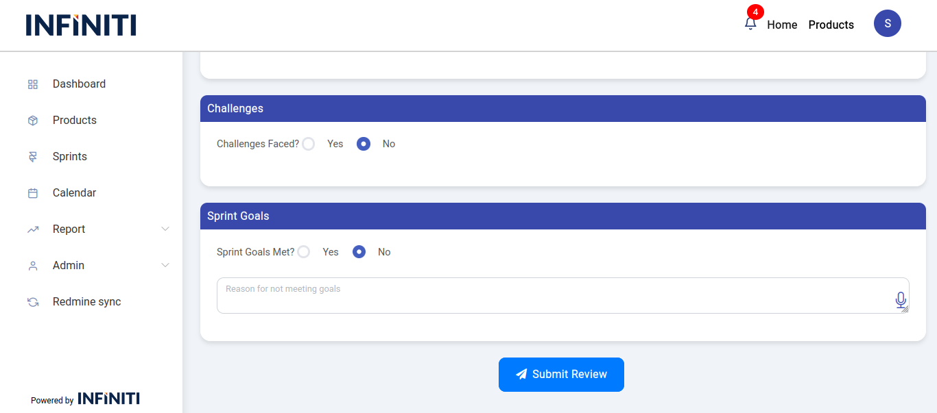 - Sprint history and view: Once the sprint review is successfully submitted, it will be available in the sprint history and sprint view page.