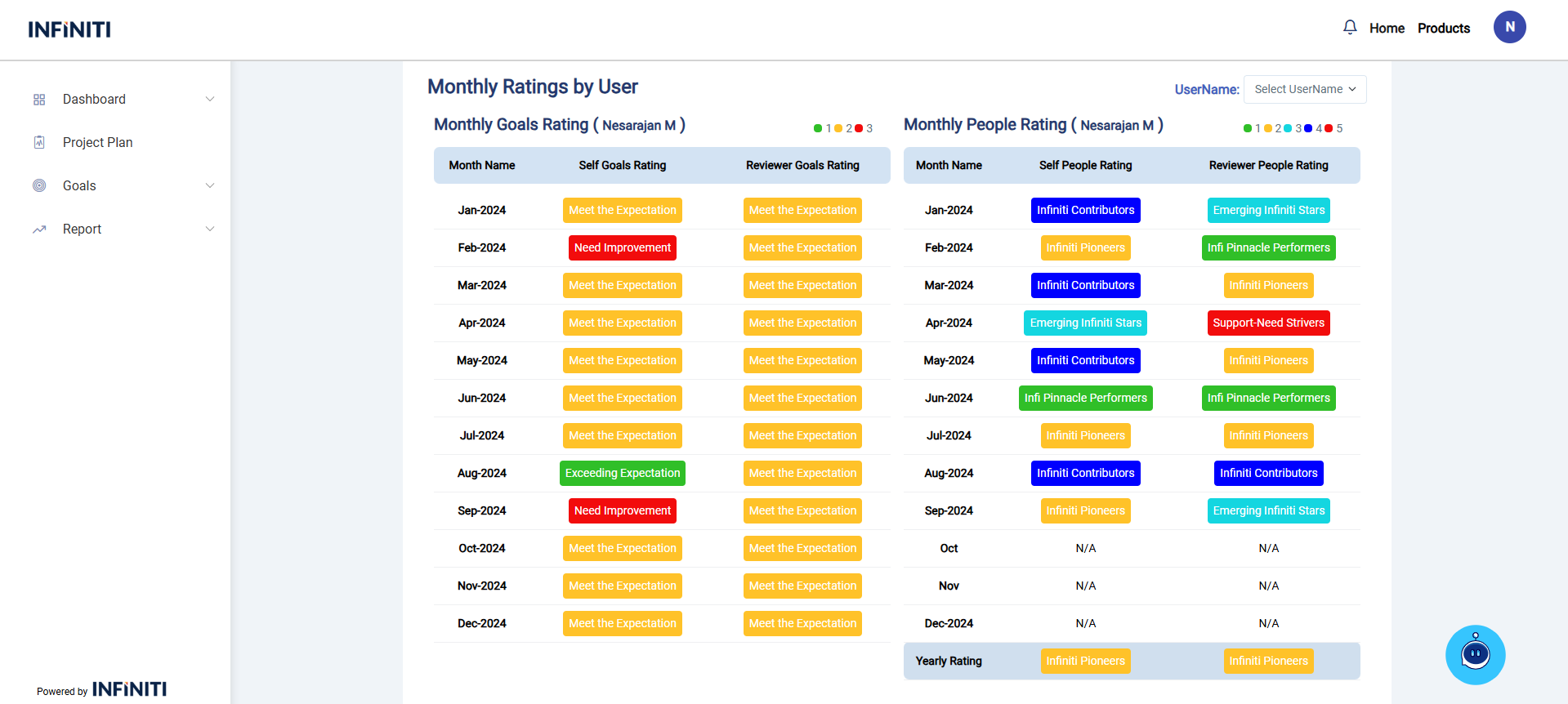 - you can displays the Self Goals Rating and Reviewer Goals Rating by Monthly wise.