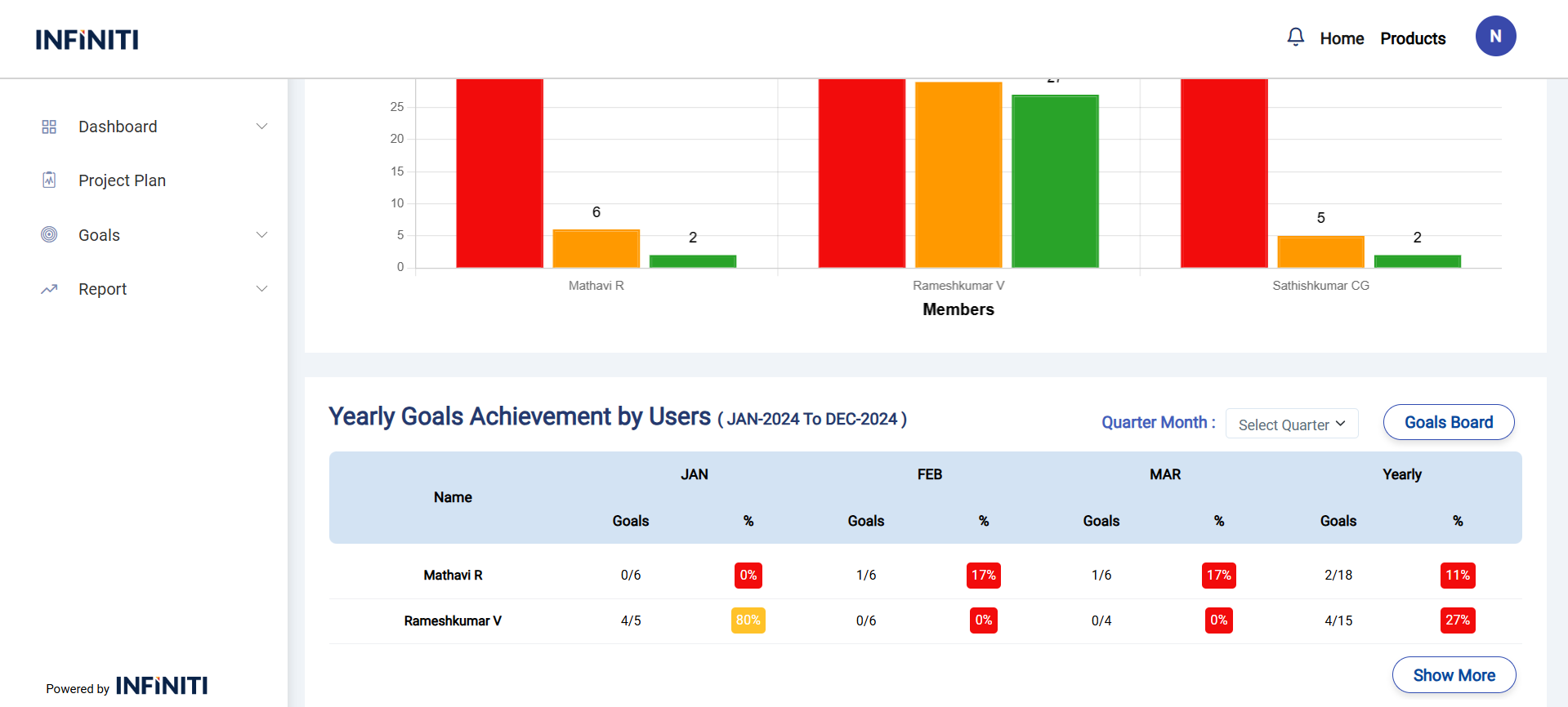- “Show More” button used to redirect into the Goals List Page to view all Ongoing goals Details.